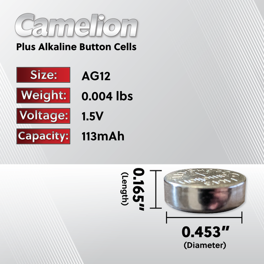 Camelion AG12 / 385 / LR43 1.5V Coin Cell Battery Pack of 2