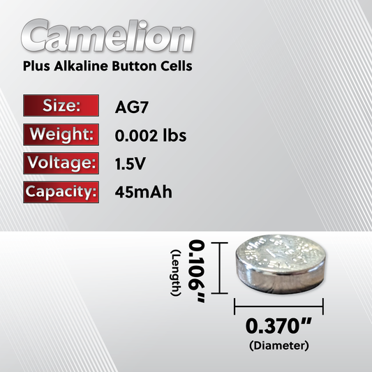 Camelion AG7 / 395 / LR926 1.5V Coin Cell Battery Pack of 10