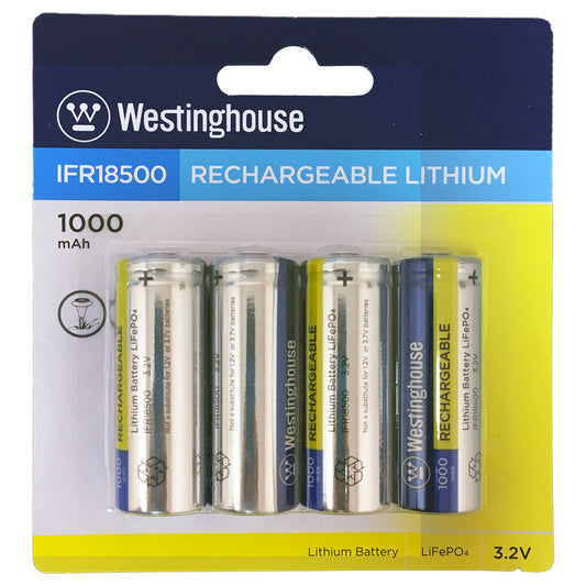 Westinghouse IFR18500 Lithium Iron Phosphate 1000mAh Rechargeable Battery Pack of 4