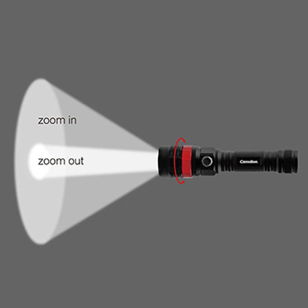 The Camelion RT395 T6 COB LED Rechargeable Tactical Light combines durability, flexibility, and high-performance lighting. With its multiple lighting modes, adjustable focus, and rechargeable battery, it's a versatile tool suitable for a range of outdoor activities and security applications.