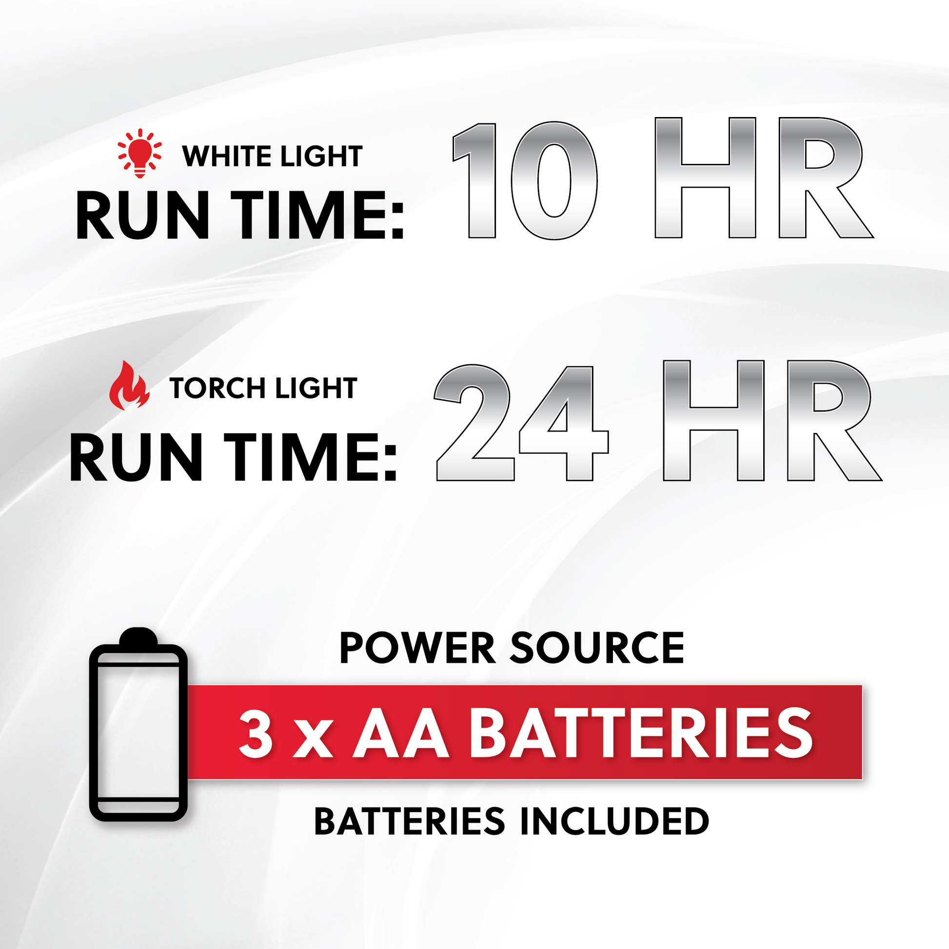 - White Light: This mode delivers a brightness of 120 lumens and has a run time of approximately 10 hours.