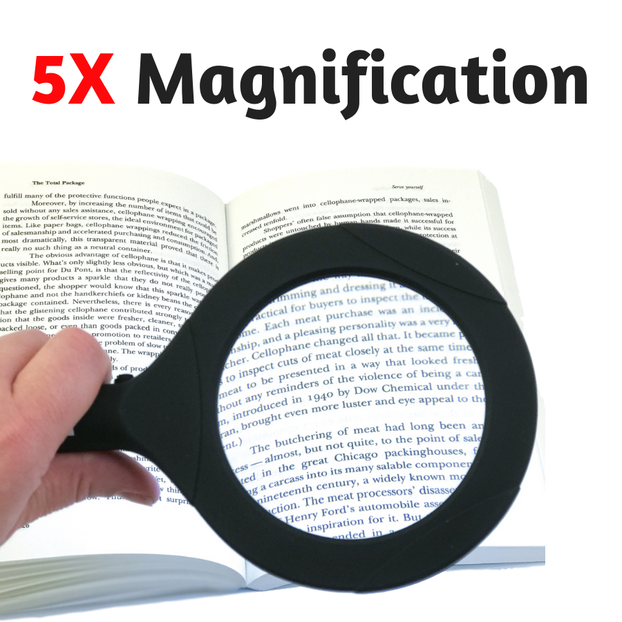 - 5x Magnification: The built-in magnifying glass offers 5x magnification. This high level of magnification is perfect for reading small and fine print without straining your eyes.