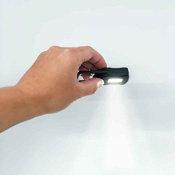 - Ultra-Bright COB LED Flashlight: The Microlux is equipped with an ultra-bright COB LED array that transforms into a powerful flashlight. Whether you need a steady beam of light or a flashing emergency beacon, it's just a button push away.