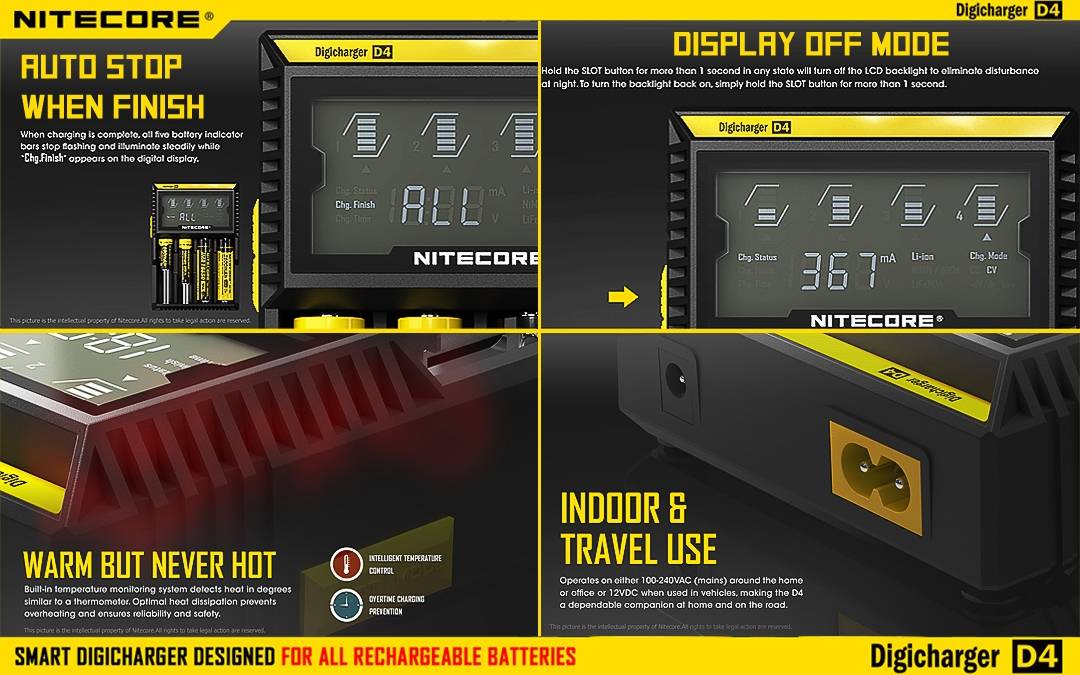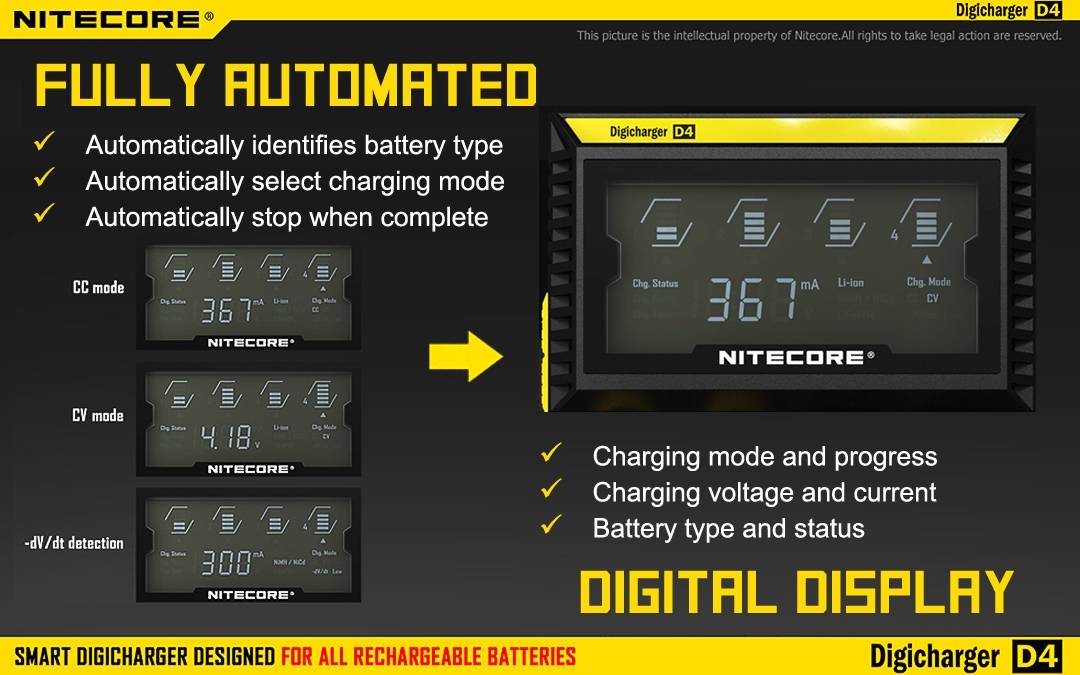 Upgrade to the NITECORE D4 Digicharger for unparalleled charging performance and peace of mind. It's as simple as insert, detect, and charge.