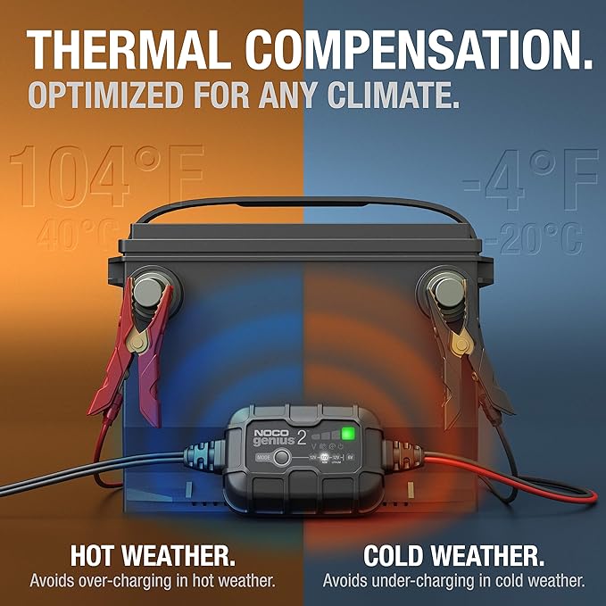 Stay informed with the digital display, providing charging status and diagnostic tests for conditions like a dead battery, reverse polarity, and more. Compatible with all gas and diesel vehicles, from cars and motorcycles to boats and RVs, the GENIUS2 ensures optimal performance for a wide range of applications. Charge with confidence, anywhere, anytime, and experience the ultimate in battery care technology.